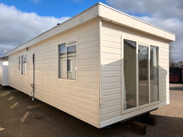 chalet d’occasion avec 2 chambres, double vitrage et entièrement hiverné.