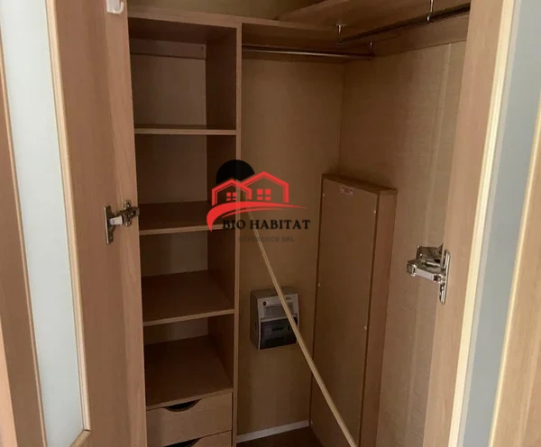 Cuisine: en forme U avec de nombreux rangements (hotte aspirante, cuisinière, four, four à micro-ondes, machine à laver, réfrigérateur/congélateur)