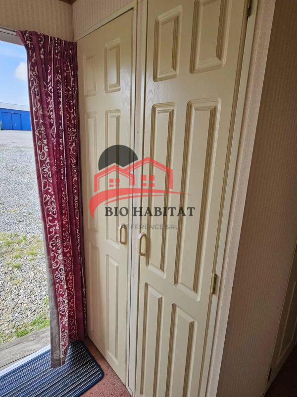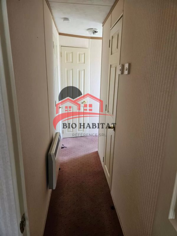 Mobil-home extra large, magnifique, propre et entièrement équipé de 10,9 x 3,7 m avec deux entrées, doubles fenêtres et portes isolées (dithermie). Séjour (canapé-lit), coin repas, cuisine en U avec électroménager, chambre (lit double avec rangements) + dressing + WC privatifs avec lavabo, chambre (2 lits), salle de bain avec douche avec pare-douche fixe et baignoire siège + WC. Cheminée à gaz + radiateurs électriques dans les chambres, chauffe-eau au gaz. Ossature galvanisée ! Plafond surélevé dans tout le mobil-home !